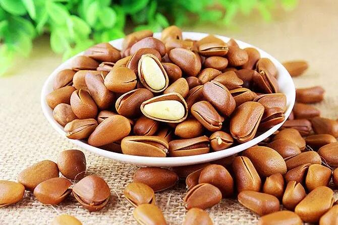 5、松子:松子富含蛋白质、维生素E、亚麻酸和锌,有助于提高性功能和性欲。